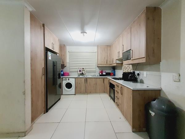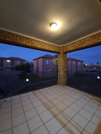 The unit features 87 square metres of floor space, open plan lounge area opening onto a huge covered balcony, an upgraded modern fully fitted kitchen with abundant cupboard space & space for a double door fridge, 3 spacious tiled bedrooms, 2 bathrooms (1 en-suite with a bath tub and the common bathroom with a shower), 1 carport & 1 open parking bay. There is a security gate at the main entrance. The unit has a pre-paid electricity meter and a fibre internet connection.