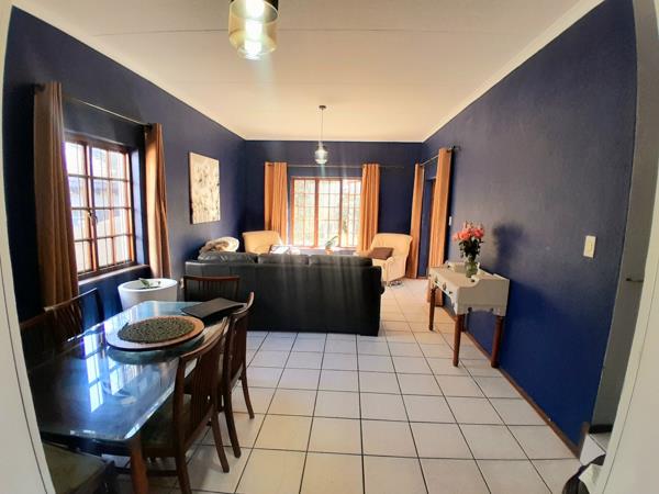 A charming two-bedroom, two-bathroom cluster home is now available for sale in the highly sought-after and centrally located suburb of Halfway Gardens. Upon entry, a welcoming feature wall leads you to a well-positioned kitchen on the left, fitted with a built-in stove, ample cupboard space, and multiple appliance connections. To the right, the spacious living area offers a natural separation between the dining and lounge spaces, creating a comfortable flow throughout. Down the corridor, both generously sized bedrooms offer built-in wardrobes and en-suite bathrooms, while a separate visitor toilet adds convenience.