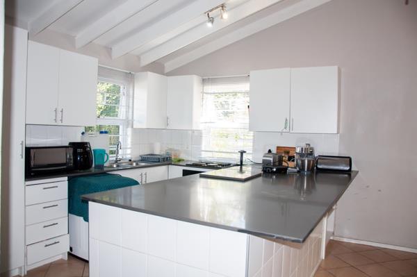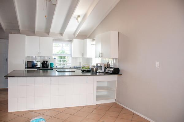 A spacious open-plan lounge and delightful kitchen offer plenty of built-in cupboards with space for a single-door fridge and space for a washing machine.