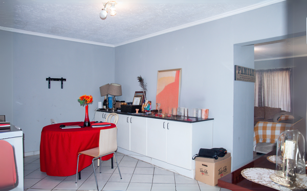 Just off the kitchen is the separate dining room, which is very spacious, with extra cupboard space and can also fit a double fridge and a deep freezer.