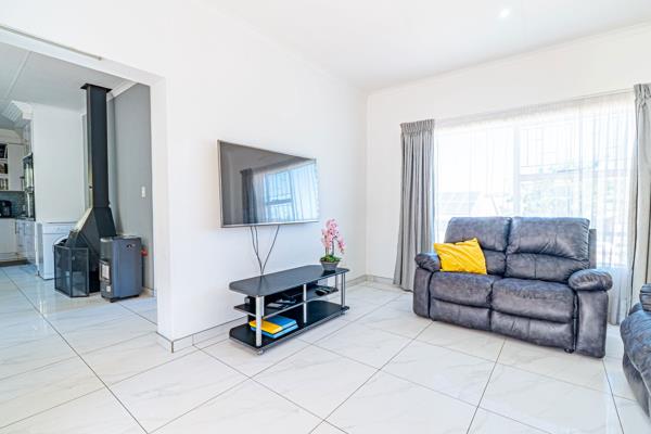 Step through the front door and into a sun-drenched, open-plan living space, where natural light floods every corner. The seamless flow between the lounge, dining area with cozy fireplace, and the modern kitchen creates an inviting atmosphere for family time and hosting guests. The kitchen is thoughtfully equipped with a gas hob, while a separate scullery provides space for appliances and extra storage, keeping the heart of the home clutter-free and functional.