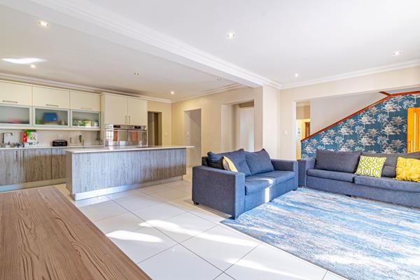 Step inside to discover a grand, open-plan living space ideal for both everyday living and sophisticated entertaining. The expansive lounge, complete with a statement fireplace, flows seamlessly into a well-appointed kitchen featuring a center island, gas hob, and an oversized scullery for all your culinary needs. Adjacent to the kitchen is a private dining roomperfect for dinner parties or family gatherings.