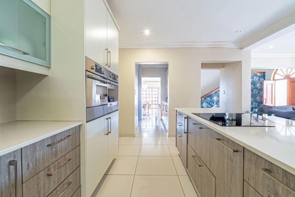 Glass doors lead from the lounge to a covered patio with a built-in braai, overlooking a low-maintenance, manicured gardenyour own tranquil escape. Downstairs also includes a stylish guest powder room, double automated garage, and a dedicated storage room for added convenience.