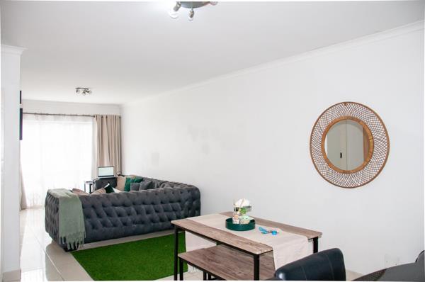 Renovations throughout the apartment include fresh tiling, new cupboards in the bedrooms, and a full repaint, giving the space a clean, contemporary feel. Burglar bars have also been installed for added peace of mind.