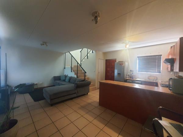 Lovely, neat & secure lock-up & go duplex unit at Jasper Hill complex in Halfway Gardens, Midrand. The unit has two bedrooms & 1 full bathroom upstairs, spacious open plan lounge & dining areas plus kitchen on the ground floor and a balcony where you can enjoy pleasant views of Halfway House towards Grand Central Airport, single garage and 1 carport. The main bedroom is very spacious and has ample cupboard space. Both bedrooms do not have carpets and are about to be tiled, so you may just have an opportunity to choose the tiles you want provided you agree on the budget. The kitchen has a breakfast counter and ample cupboard space too. Storage space below the staircase. Electricity is pre-paid. There is a security burglar gate by the main door. Internet fibre connection. The complex features a children''s play area, intercom system, 24 hour security service & strict access control. Monthly Sanitation amount payable is R771.62. A Gautrain bus stop is about 100 metres away. Halfway House Primary and Midrand High schools are both under 1 km away. Midway Mews, Sanridge and Carlswald shopping centres are all within 1- 1.5 km radius. Mall of Africa is about 4 kilometres away. Easy access to the N1 via New Road.