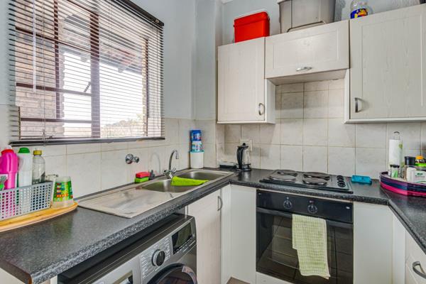 Neatly kept, fully tiled, open-plan living with fitted stove and built-in cupboards. Cozy, hassle-free living that feels like a hotel room on the third floor! Secure complex with 24-hour security and childrens play area.