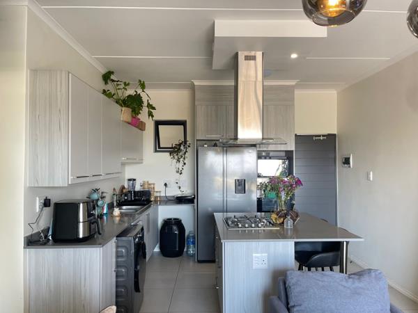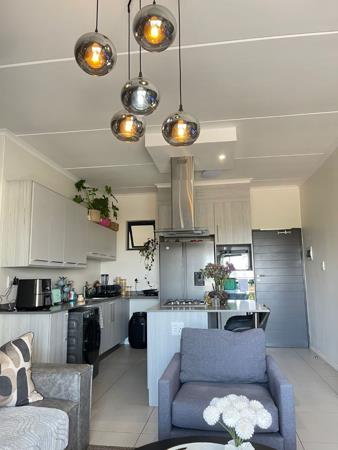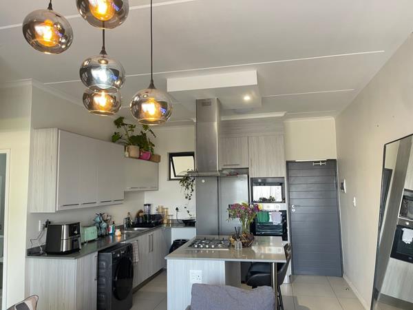 Discover an exquisite urban sanctuary within the vibrant heart of Halfway Gardens, Midrand. This contemporary residence, nestled within a desirable complex, epitomizes sophisticated living with its striking modern architectural design, characterized by clean lines and a chic white and dark grey facade. The property immediately captivates with its private swimming pool, offering an exclusive retreat at ground level, complemented by convenient paved parking for two vehicles.