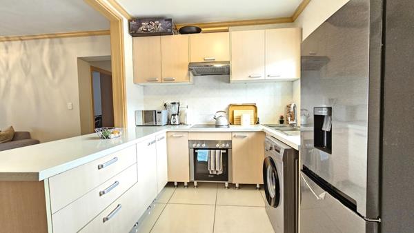 This well-maintained apartment offers a modern open-plan kitchen with ample cupboard space, quality finishes, and room for appliances. The kitchen flows into the bright lounge area, which opens onto a private balcony, perfect for relaxing or enjoying fresh air.
