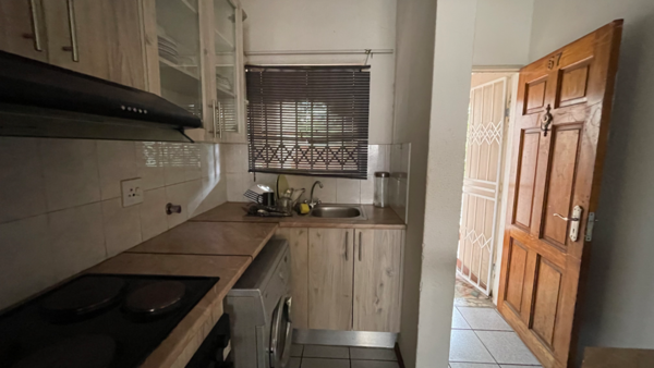 Situated within a security estate and complex, the property ensures peace of mind with features like an access gate and security gates on windows and doors. Fibre connectivity is available, supporting modern living and remote work needs.
