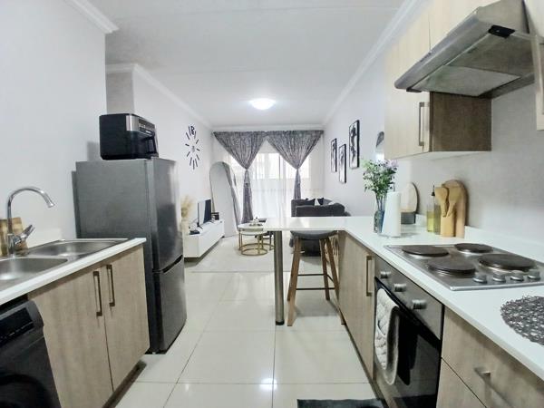 The apartment offers a comfortable open plan living and dining area that flows seamlessly into a functional kitchen, creating a welcoming and practical living space. The bedroom is well sized with built-in cupboards, while the bathroom is neatly finished and easy to maintain.