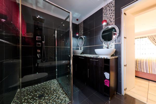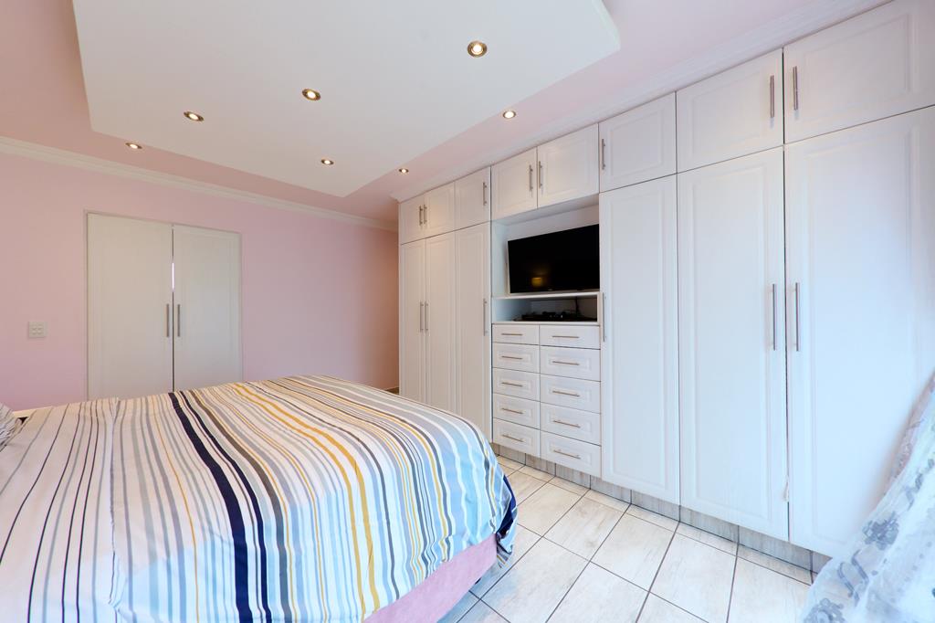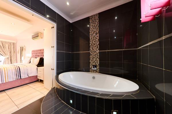 - Master bedroom is huge with wall to wall cupboards and an en-suite with a corner bath, shower and vanity