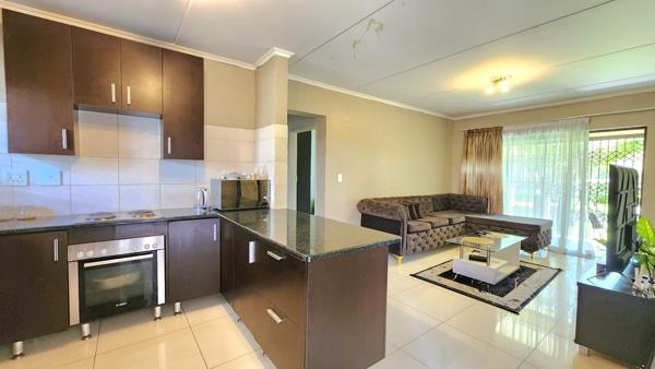 Step inside to find a spacious, sun-drenched lounge, providing the ideal setting for relaxation or entertaining guests. The well-appointed kitchen boasts ample cupboard space, making meal preparation a delight.