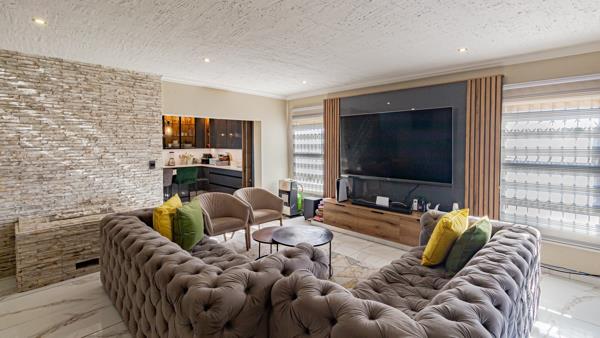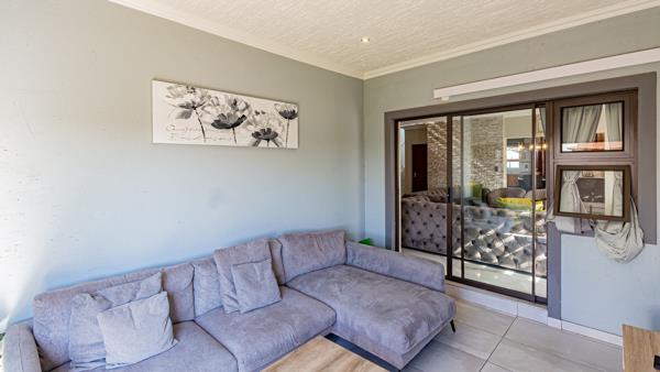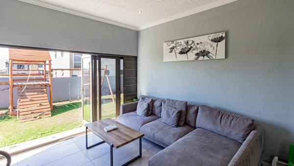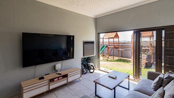 The living area leads out to a sunken enclosed patio area which is fitted with a built-in braai.