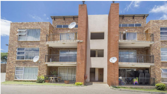Communal swimming pool, landscaped gardens, and sometimes a kids play area or BBQ braai zones for residents .