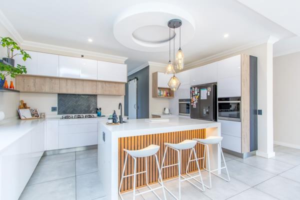 Discover a move-in-ready home designed to impresscrafted for easy, elegant living that blends indoor serenity with outdoor enjoyment. The seamless floor plan effortlessly connects airy living areas to a shaded pergola, ideal for alfresco dining and weekend entertaining. The entertainers dream continues with a built-in bar, automated blinds, extra seating, and stacking doors that flow directly to a heated pool. Featuring a modern white high gloss kitchen, fitted with a gas hob, walk-in pantry, prep basin, and scullery. Upstairs, enjoy the comfort of a PJ lounge with air conditioning, 4 bedrooms with a convenient kitchenette, and a private home office/study downstairs, or a guest bedroom and full bathroom offer privacy and convenience for family or visitors.