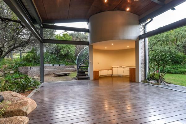 This breathtaking home is positioned on one of the most exclusive stands in Helderfonteinoffering privacy, tranquility, and direct access to nature. With one-of-a-kind finishes, high ceilings, exposed I-beams, and solid wood flooring throughout, the home brings a contemporary industrial feel blended with the serenity of a bush escape.