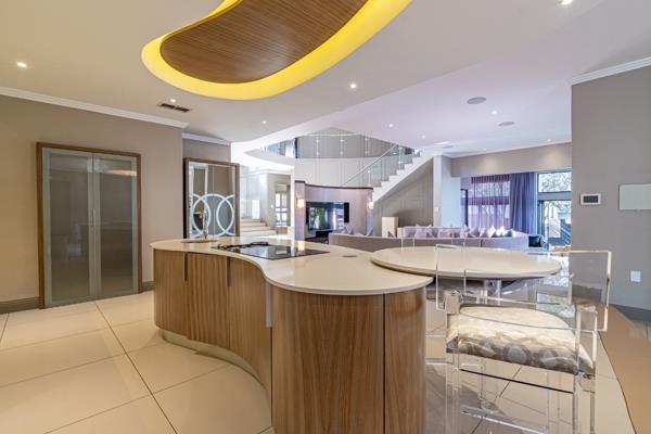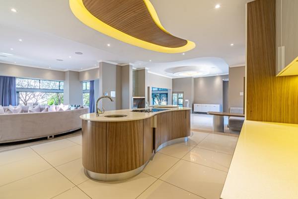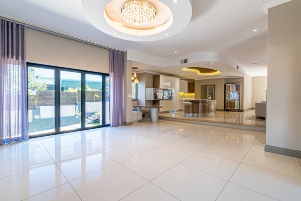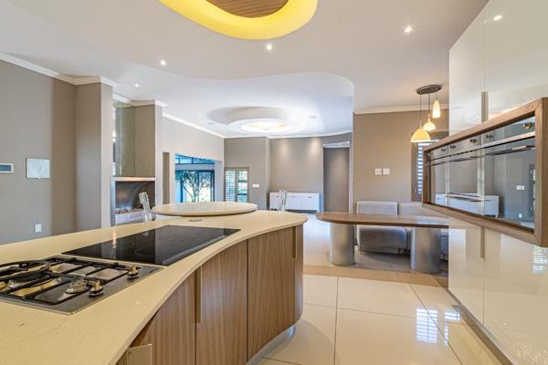 Positioned within the highly sought-after Helderfontein Estate, and ideally located near Steyn City and Dainfern, this exceptional residence is a refined convergence of architectural precision, advanced technology and understated luxury. Set on a 1 260 m² stand with an impressive 920 m² under roof, the home has been designed for both statement entertaining and effortless family living. Generous volumes, flawless detailing and seamless flow define the interiors, which include multiple reception and lifestyle areas such as a private lounge, TV lounge, fully equipped cinema room and elegant dining space. Smart home automation, integrated sound, air-conditioning throughout and a central vacuum system enhance daily comfort, while a solar installation allows the home to operate approximately 60 off-grid. The bespoke kitchen forms the heart of the home, featuring Caesarstone countertops, integrated fridge and freezer, dual ovens, two microwaves and a breakfast nook, supported by a pantry, scullery and full laundry. Stack-back doors open to an enclosed sunroom patio with built-in braai, flowing onto a generous pool deck and an entertainment-ready games or bar room. A spacious home office, guest suite with full bathroom, gas fireplace and garaging for three vehicles one currently converted into a gym complete the lower level.