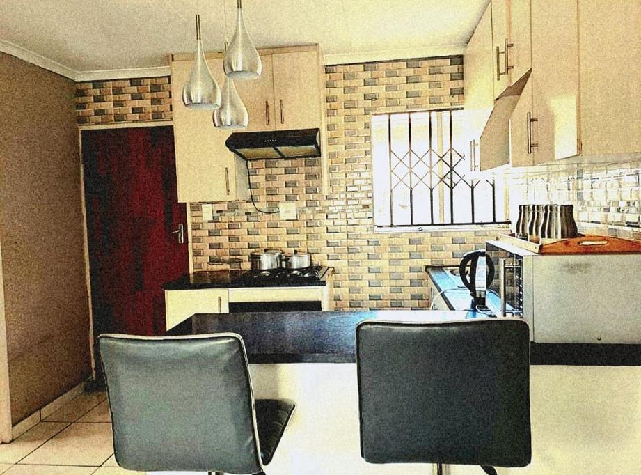 The kitchen and living spaces flow seamlessly together, creating a warm and open atmosphere perfect for family interaction and entertaining. The modern kitchen features stylish cabinetry, a tiled backsplash, and ample counter space, overlooking the spacious lounge and dining area. Large windows allow natural light to brighten the space, while the open layout enhances comfort and connection throughout the home.