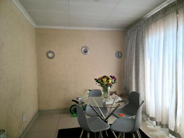 The house has a spacious lounge that is ideal for relaxation, as well as a separate dining room perfect for family meals and entertaining guests. The kitchen is fitted with cupboards, offering ample storage and a practical layout for everyday use.