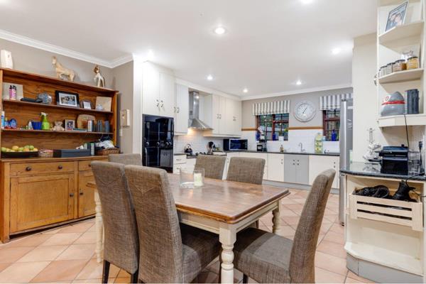 This beautiful country home on a 1 ha stand is set in the heart of equestrian paradise. Currently operating as a popular, functioning 3 star rated guest house this home offers an extensive formal lounge with feature wood burning fireplace, central dining room, TV lounge and stunning farm style kitchen with gas hob, 2 ovens, informal dining area, scullery, walk in pantry storage and laundry room, 5 spacious bedrooms, all en-suite and with built-in cupboards. The property also includes two additional potential bed and breakfast apartments situated in an adjacent building. The double volume entrance welcomes you into this special home. The Main bedroom is north facing with full en-suite, and features a wood burning fireplace, wall heater and wooden doors opening onto a viewing balcony. The other two upstairs bedrooms are en-suite, carpeted and with built-in cupboards. Downstairs the fourth bedroom is wheel-chair friendly, and offers an open plan full bathroom, and doors leading out onto a patio overlooking the entrance with the fifth en-suite bedroom opening onto the garden. The formal lounge is welcoming with a bar and fireplace and the breakfast room opens onto a tranquil atrium. The spacious country kitchen has a walk-in pantry, an open plan dining area and a lounge with cosy fireplace. This character residence offers wrap around patios as well as a private outdoor lapa with boma, perfect for entertaining.