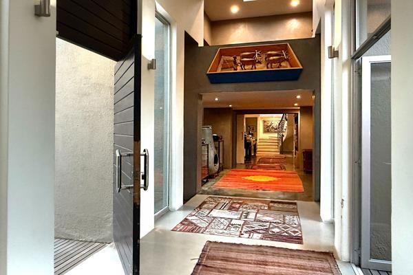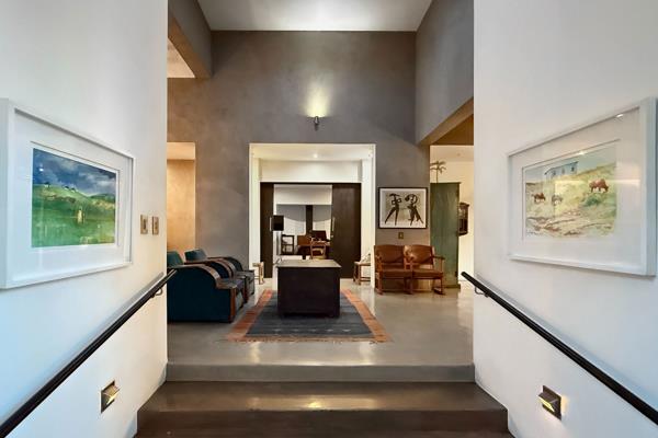 Magnificent Home. Coming home to this residence feels like escaping the city into a private retreat. Designed with striking architecture and natural textures, it offers a rare balance of sophistication and comfort. Double-volume spaces flow seamlessly into open-plan living areas where glass doors fold away to reveal patios made for entertaining, complete with built-in braai, dining, and lounging spaces.