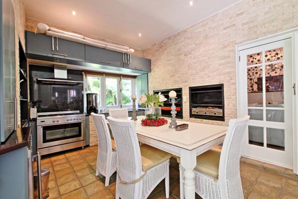 At the core of this residence is the sun-soaked entertainment haven, an open-concept living and dining space that seamlessly connects to the lush garden and inviting pool area. The fully fitted kitchen ensures effortless hosting, where every culinary delightfrom a gas or wood-fired braai to a perfectly paired wine selection from the elegant cellarcan be savoured without ever leaving the company of family and friends.