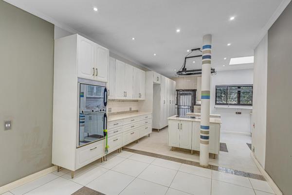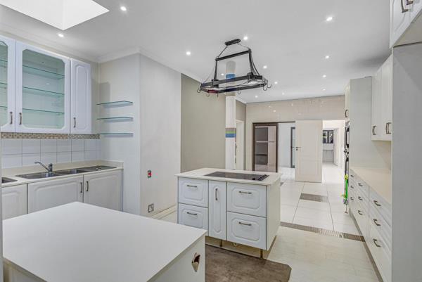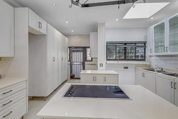 Adjacent to the kitchen is an open-plan dining area that flows into four spacious lounges, perfect for family gatherings. Enjoy the charm of a covered patio overlooking a beautifully landscaped garden and an inviting swimming pool. Plus, theres a private man cave tucked beneath the patio for ultimate relaxation.