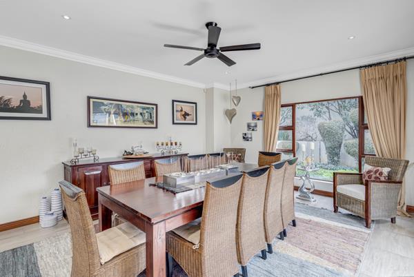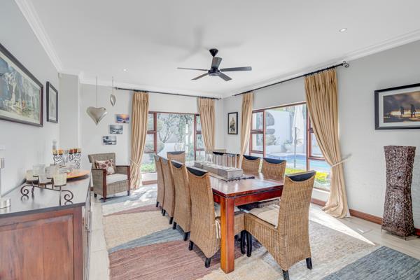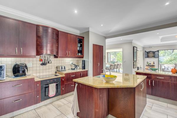 Discover a home designed for luxurious living and effortless entertaining. From the moment you enter, the double-volume foyer sets a grand tone, complemented by a discreet guest toilet. The expansive open-plan TV and dining rooms invite relaxation and gathering, extending to a superb enclosed patio. This versatile space, complete with a built-in braai and a warm wood-burning fireplace, is perfect for year-round enjoyment. An elegant built-in bar area with its own private balcony offers an ideal spot for evening drinks. The open-plan kitchen boasts granite countertops, a charming middle island with a breakfast area, a separate scullery with ample space for appliances, and a spacious pantry. Outside, an established garden with a pool awaits.