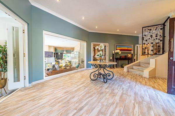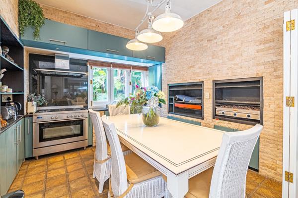 Every detail has been crafted with refinement: a chefs kitchen with integrated appliances, a dedicated guest-suite kitchen, and an outdoor entertainers kitchen with gas cooking facilities. Three formal lounges boast real fireplaces, including a pellet fireplace in the main bedroom, ensuring year-round warmth and elegance. The home is fortified with American shutters in the master suite, advanced app-controlled irrigation systems, and seamless integration of Cat-6 cabling, TP links, and DSTV access in every room for a fully connected lifestyle.