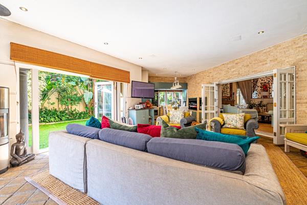 Luxury is uncompromised with underfloor heating, air-conditioning, an electronic skylight in the dressing room, and a salt-water pool with Jacuzzi. Sustainable features include solar power with inverter and gas generator backup, while future expansion is enabled with a demarcated borehole area. Double-glazed stacking doors in the guest suite capture warmth and light, creating a serene, energy-efficient retreat.