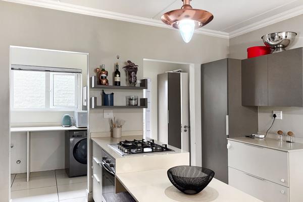 Back inside, the kitchen is generously proportioned and bathed in natural light throughout the day. For added convenience, a scullery is available to discreetly manage any household clutter. A private area accessible from the back door is perfect for laundry and storage of cleaning supplies.