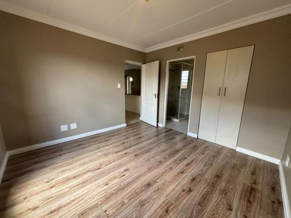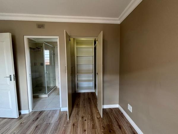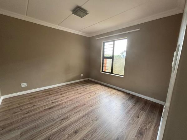 The open-plan living and dining area flows seamlessly onto a private covered braai patio, ideal for relaxed entertaining. This leads into a neatly sized private garden, perfect for quiet mornings, small pets, or enjoying the outdoors. A private wash line adds everyday convenience while keeping the space uncluttered.