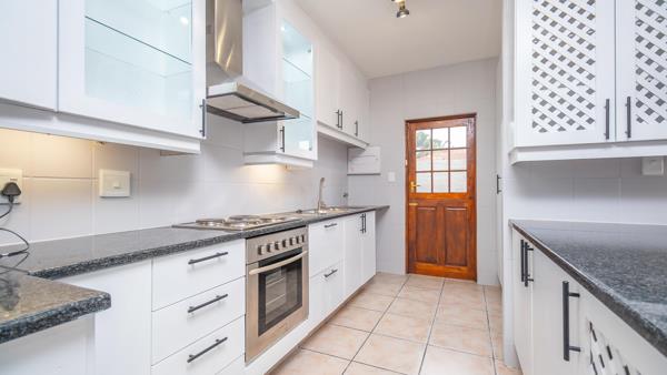 3 Bedrooms, 3 Bathrooms Upstairs Main Bedroom Suite: Features a luxurious en-suite bathroom and a desirable private balcony for quiet retreat. Open-Plan Living: Spacious dining room and lounge with a cozy fireplace. Entertainers Dream Patio: Opens directly from the living areas and overlooks the pool area, allowing for easy supervision of children. Gully Kitchen: Efficient layout with dedicated space for a double-door refrigerator and dishwasher. Separate Laundry Storage: Includes a valuable, separate storeroom for the washing machine and dryer. Outdoor Space: Set within a well-established and meticulously maintained garden. Parking: Secure double lock-up garage.