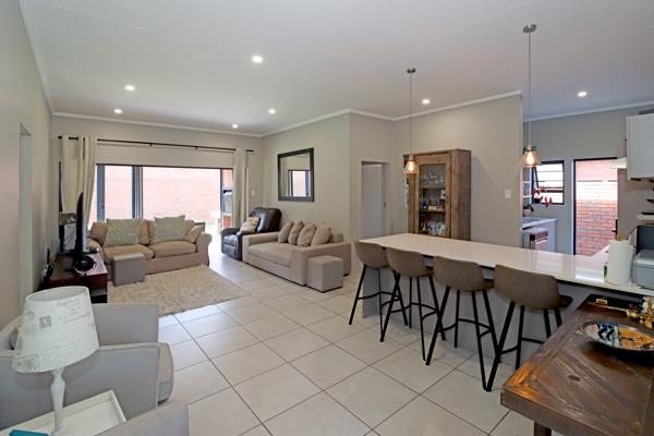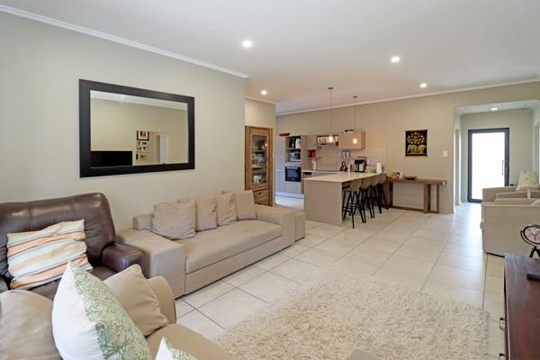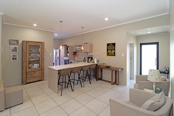 Divine open and airy entertainment and living space comprising a lounge, dining, kitchen and patio enclosed with stackaway doors and built-in braai. All this opens out to a well-kept and luscious green garden - totally private. The beautiful kitchen has a breakfast bar, space for a double-door fridge and space for one under-counter appliance.