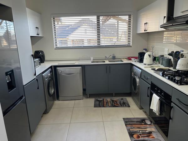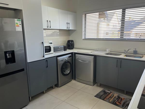 As you enter the apartment, you are greeted by an open-plan living area, recently refurbished and painted. Behind the door, you will find a 5KVA inverter connected to the lights and all plug points in and around the apartment. Walking into the kitchen, you are greeted by recently refurbished finishes and a unique, sleek design. The apartment comes with 4 lavish appliances included, a single door fridge, washing machine, tumble dryer and dishwasher.