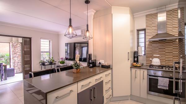 This modern home with beautiful finishes is located at Riverbend Estate in the sought-after Kyalami Hills area.