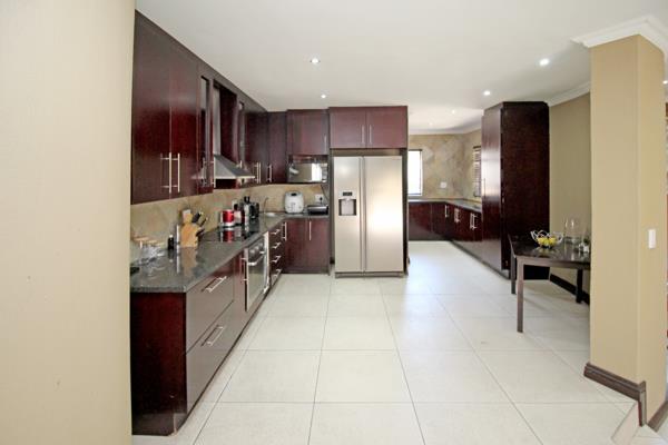 Upon entering, you are greeted by an expansive layout providing ample space for all your needs. Downstairs are 3 reception areas comprising a formal lounge, dining room and TV room. The well-appointed kitchen, complete with a scullery, is a culinary enthusiasts dream. Divine patio overlooks the garden and pool area. This pet-friendly property features a double garage, ensuring secure parking and additional storage. The lush garden creates a serene outdoor haven, while the sparkling swimming pool is perfect for relaxation and entertaining. Additionally, a staff room provides convenience for households requiring a domestic.