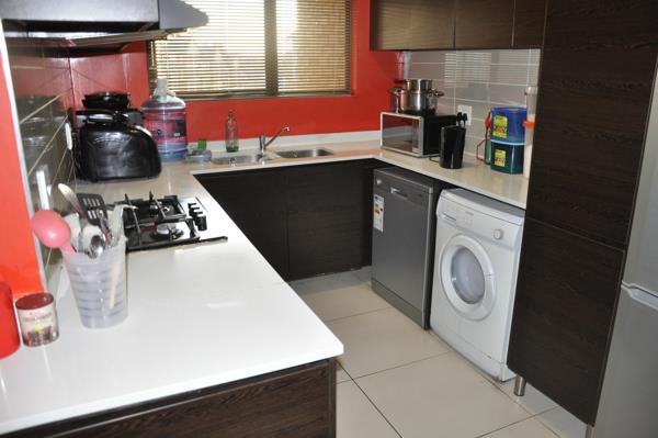 From the moment you enter, youre welcomed by a bright and airy open-plan layout, with high-end finishes and attention to detail throughout. The sleek kitchen is a culinary delightfully fitted with Caesarstone countertops, ample cupboard space, and a full range of premium DEFY appliances, including a fridge, washing machine, tumble dryer, and dishwasher.