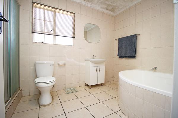 Kitchen has ample cupboard space with a pantry cupboard, granite tops and breakfast bar. Accommodating 3 appliances and piped for washing machine and dishwasher the scullery leads out to a large, paved court yard.