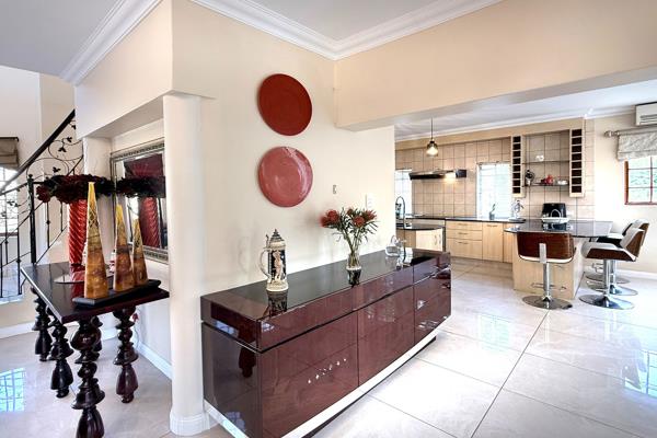 This stylish home welcomes you with a double-volume entrance hall leading into spacious living areas, including a dining room and lounge. The large modern kitchen with granite counter tops, glass top hob, under counter oven, prep sink, breakfast bar and scullery, is the heart of the home.