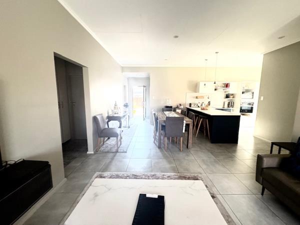 The home features open-plan living, with a spacious lounge and dining area flowing seamlessly into the kitchen, creating an ideal space for everyday living and entertaining.