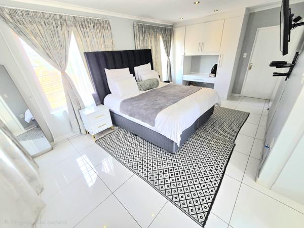 Step into a home where space, comfort, and family living come together effortlessly. The welcoming entertainment area with a built-in braai and fireplace sets the scene for relaxed family evenings and memorable gatherings, complemented by a convenient home office space. Sliding doors lead you into a light-filled open-plan dining and living area with air-conditioning, flowing seamlessly into a well-designed kitchen featuring a pantry, scullery, and cozy breakfast counter perfect for busy mornings and shared meals.