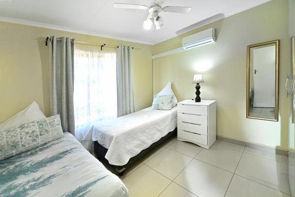 The two well-sized bedrooms share the family bathroom that has a shower, bathtub and basin. The master bedroom is spacious with ample cupboards and a full ensuite. All windows have aluminum frames, burglar bars and security gates at the entrances.