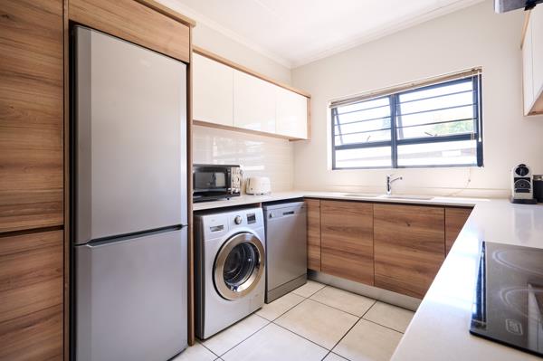 The kitchen is fitted with an electric stove and oven and includes appliances such as a dishwasher, washing machine, tumble dryer and fridge.