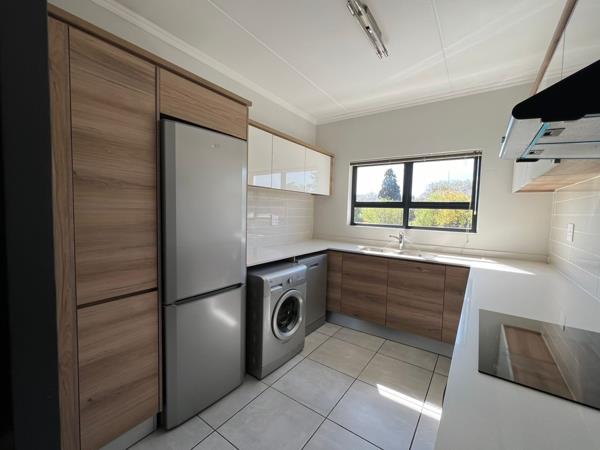 The expansive lounge flows seamlessly onto a private balcony, allowing natural light to pour in while creating the ideal indoor-outdoor lifestyle. All three bedrooms are generously sized, with built-in cupboards and large windows for a bright and airy feel. The main bedroom includes an en-suite bathroom, while the second bathroom is beautifully designed with contemporary fittings.