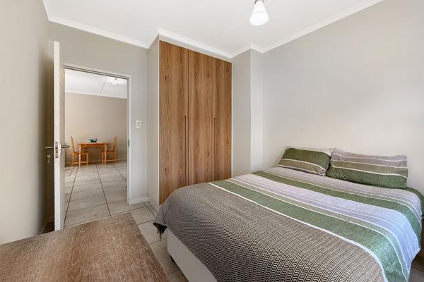 Located away from the entertaining area are two bedrooms, separated by a family bathroom. The main bedroom boasts an en-suite bathroom, thoughtfully designed to maximize space efficiency. Both bathrooms include built-in linen cupboards for added convenience.