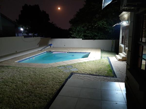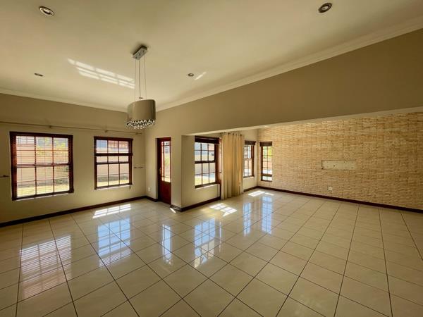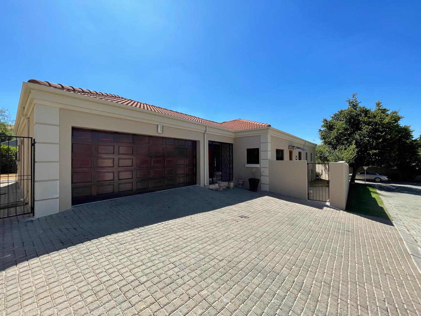 Set in a quiet cul-de-sac in this complex with first class security, this spacious home comprises three big bedrooms. The main bedroom is en suite with a dressing room area and opens out to a lovely garden and overlooks the pool. The entrance hall is split level with the rest of the house. The dining room which is large enough to hold a 10 seater dining room table, opens out to the uncovered patio and garden and is open to a well planned kitchen with space for a double door fridge and separate scullery. The spacious lounge also opens out to the patio and garden. A double garage, blue sparkling pool, staff accommodation as well as the obligatory lemon tree complete this beautiful, Immaculate home very well priced at R3 100 000.00. This home is definitely worth a visit.