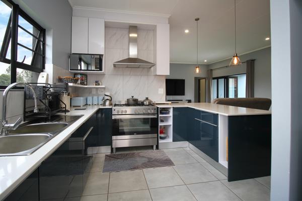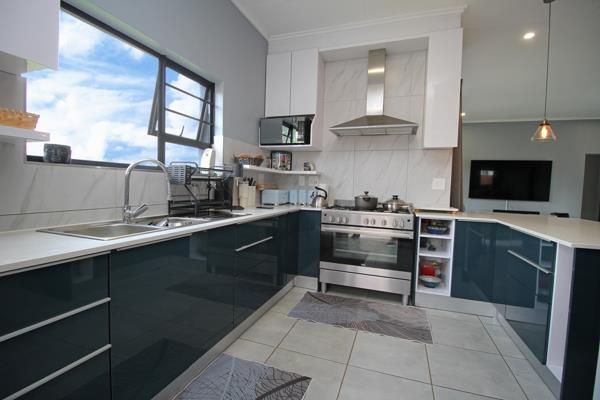 This home features an expansive open-plan layout that beautifully connects the kitchen, dining room, and lounge, offering a seamless flow while maintaining distinct zones for each function. The kitchen is designed for both style and practicality, with ample counter space, plus lots of storage and room for all your appliances.