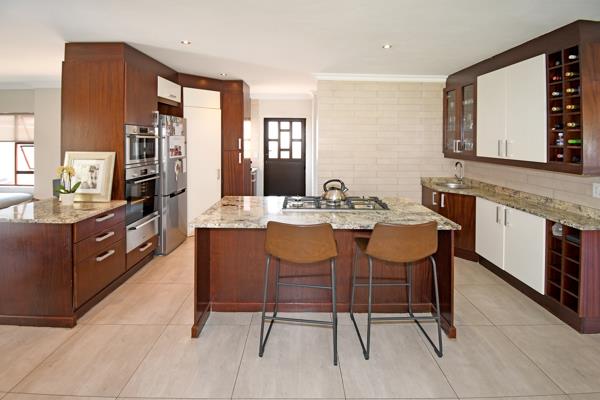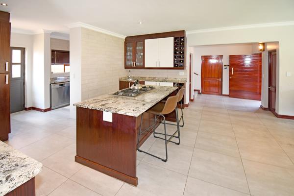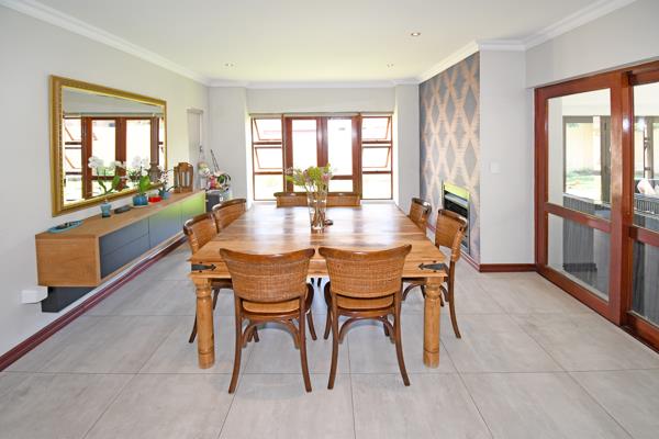 Living and entertaining couldn''t get easier with the open plan and seamless flow of lounge, dining with wood wood-burning fireplace and kitchen which all open to the patio enclosed with stack-away doors. The kitchen being the heart of the home, offers a large centre island, breakfast bar, gas hob, pantry and separate scullery with space for all appliances. The patio is perfect for year-round entertaining, has a built-in braai and leads out to the manicured garden and inviting pool.