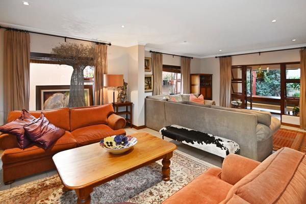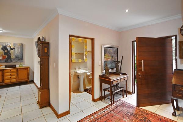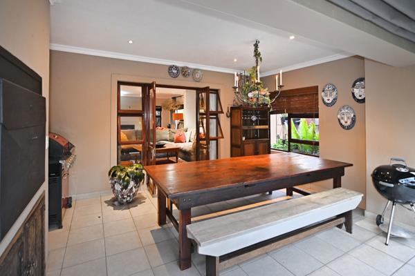 Discover this stunning family home nestled within a secure and meticulously maintained estate, renowned for its beautifully kept grounds and elegant residences. As you arrive, you are greeted by a charming paved entrance, a spacious double garage, and lush greenery that sets a welcoming tone. The first floor offers two inviting lounges, one of which seamlessly extends to the garden through glass doors, leading out to a covered patio ideal for entertaining. The patio features ample space for a large outdoor table and a built-in braai, perfect for gatherings with family and friends. Beneath the staircase, you''ll find a convenient, enclosed storage area to neatly tuck away all your essentials. A guest bathroom is conveniently situated adjacent to the lounges, providing added comfort and functionality.